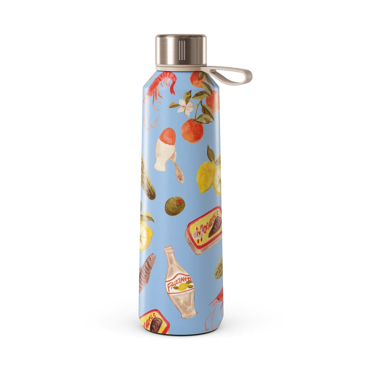 800 ml (27 oz.) water bottle: Keeps drinks hot for up to 24 hours, cold for up to 24 hours.