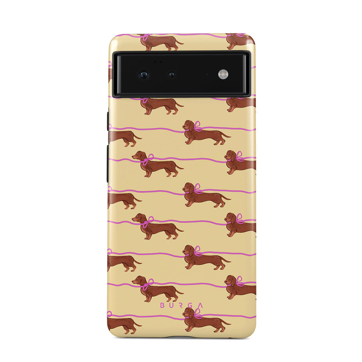 This Google Pixel 6 Pro phone case design doesn’t believe in time, only vibes. It features sassy sausage dogs with bows who, like you, are running 15 minutes behind—and blaming Mercury.