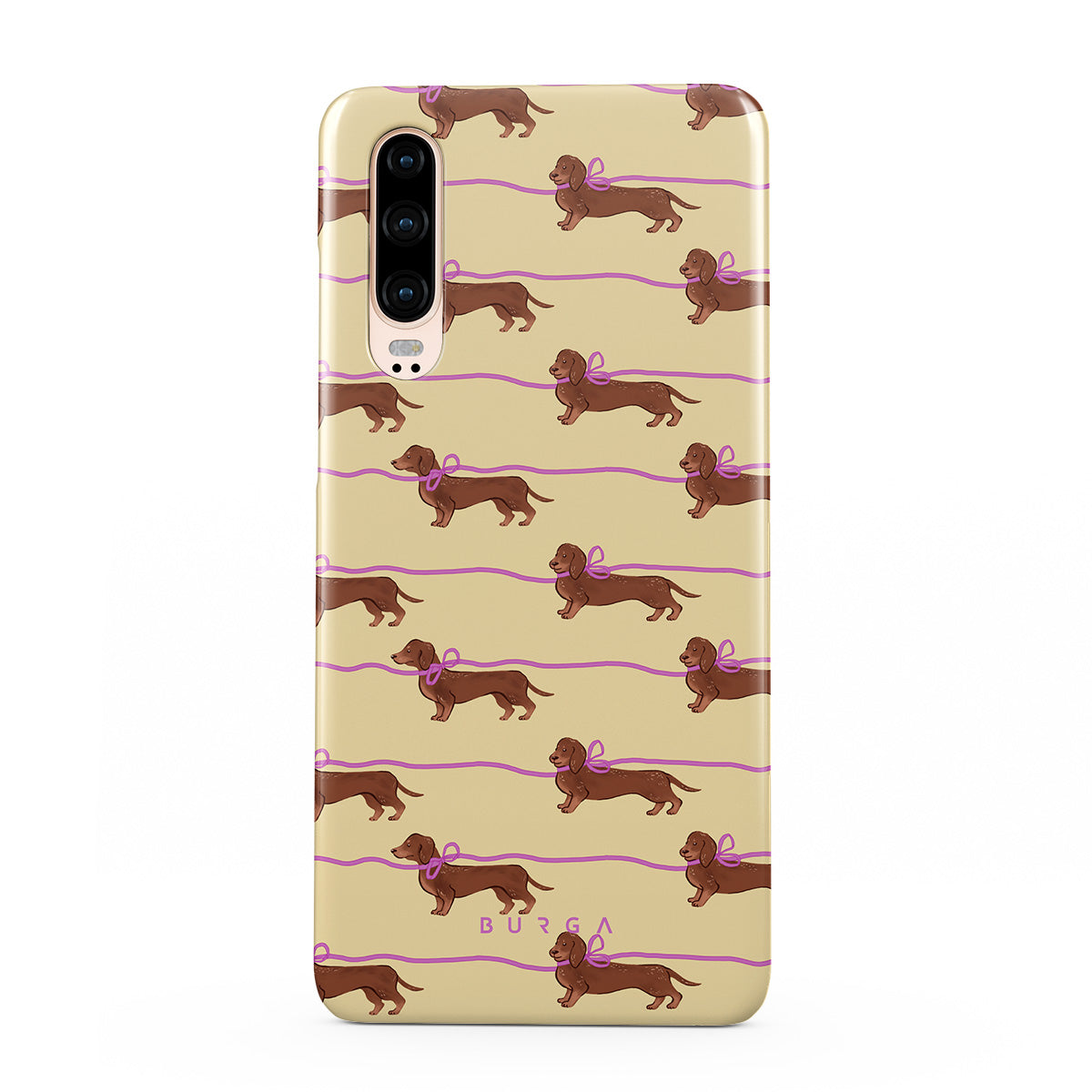 This Huawei P30 phone case design doesn’t believe in time, only vibes. It features sassy sausage dogs with bows who, like you, are running 15 minutes behind—and blaming Mercury.