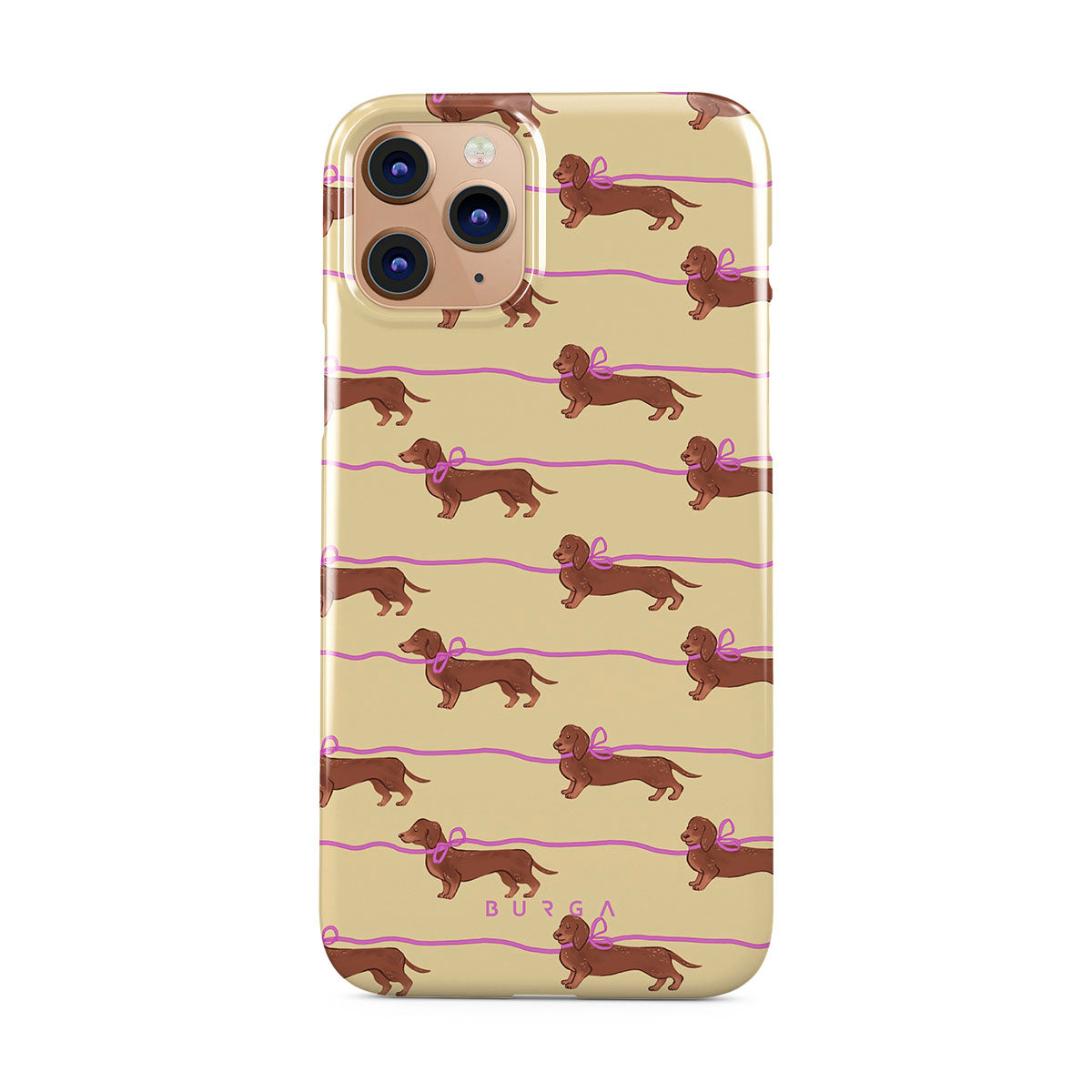 This iPhone 11 Pro Max phone case design doesn’t believe in time, only vibes. It features sassy sausage dogs with bows who, like you, are running 15 minutes behind—and blaming Mercury.