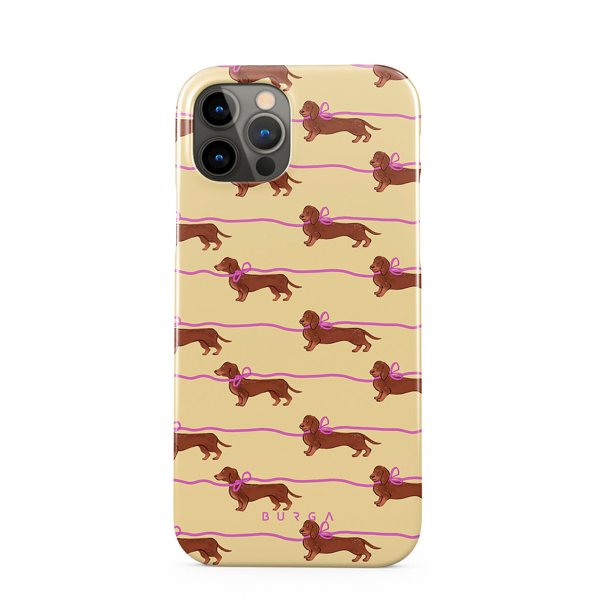 This iPhone 12 Pro Max phone case design doesn’t believe in time, only vibes. It features sassy sausage dogs with bows who, like you, are running 15 minutes behind—and blaming Mercury.