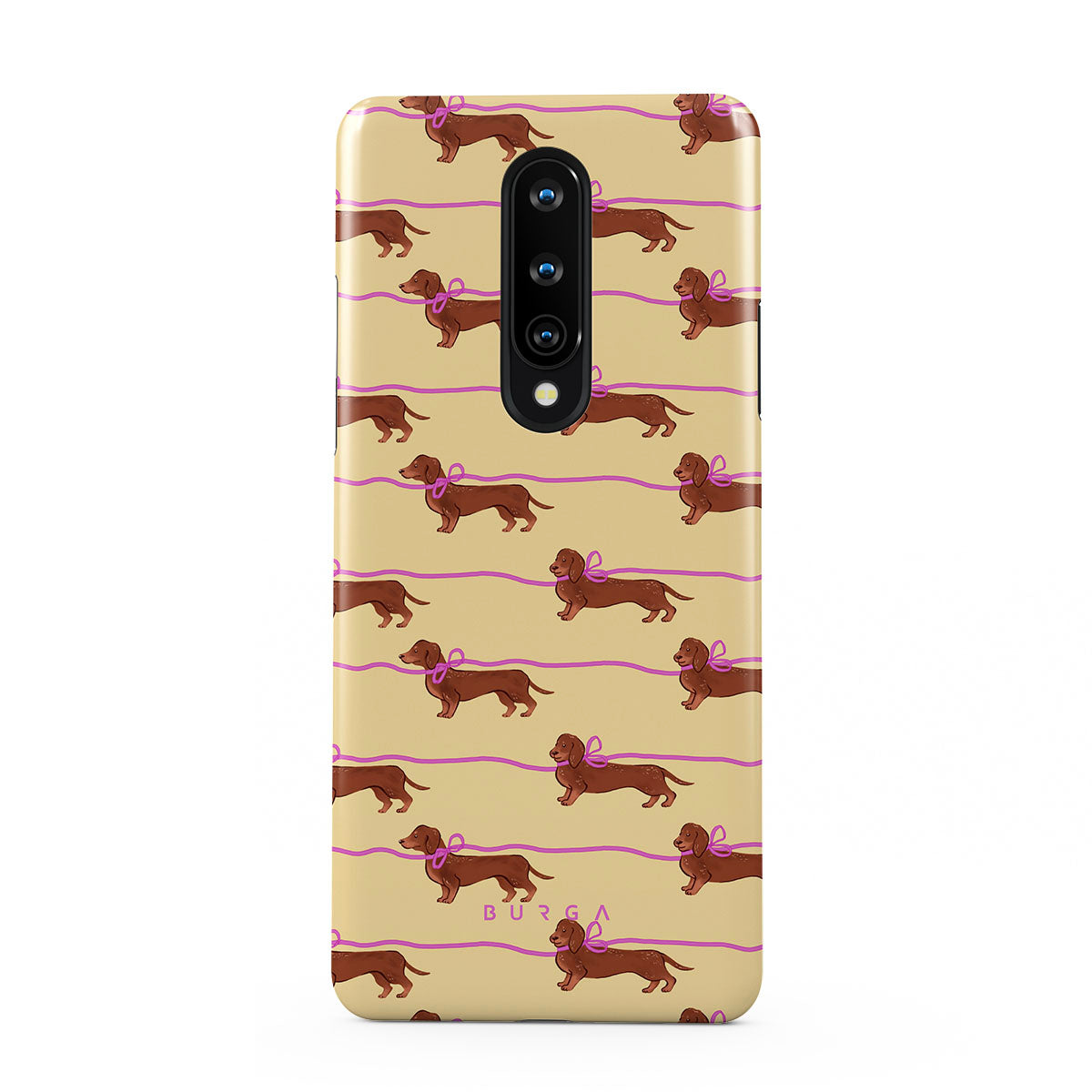 This OnePlus 8 phone case design doesn’t believe in time, only vibes. It features sassy sausage dogs with bows who, like you, are running 15 minutes behind—and blaming Mercury.