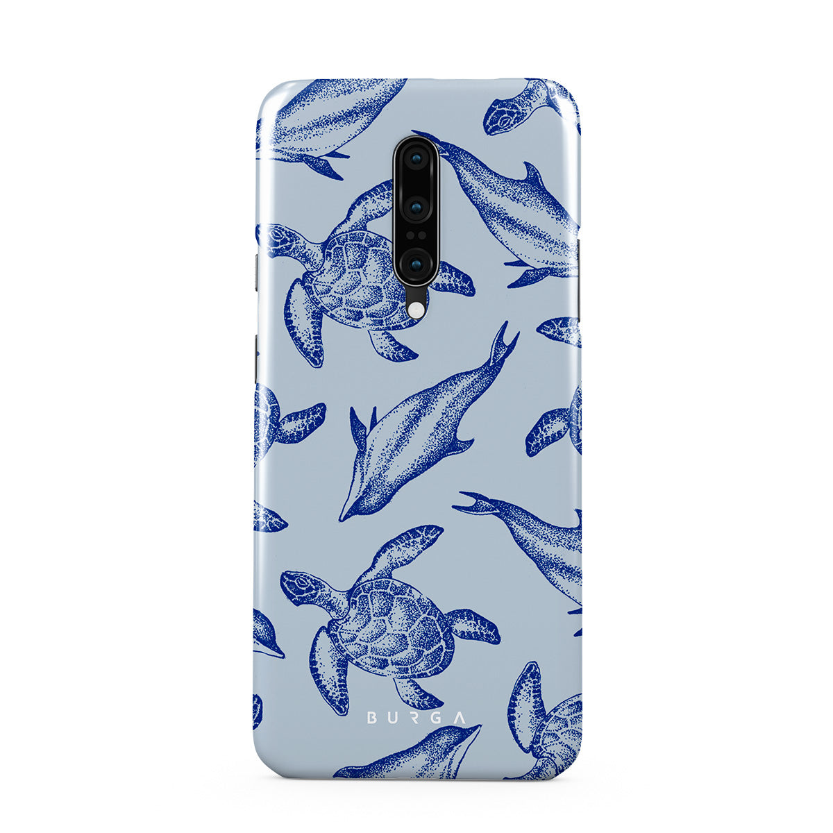 A beautiful design featuring lively turtles and dolphins playfully dancing in serene light blue water. Dive into the ocean's rhythm with our Aquatic Dance OnePlus 7 Pro / 7T Pro case.