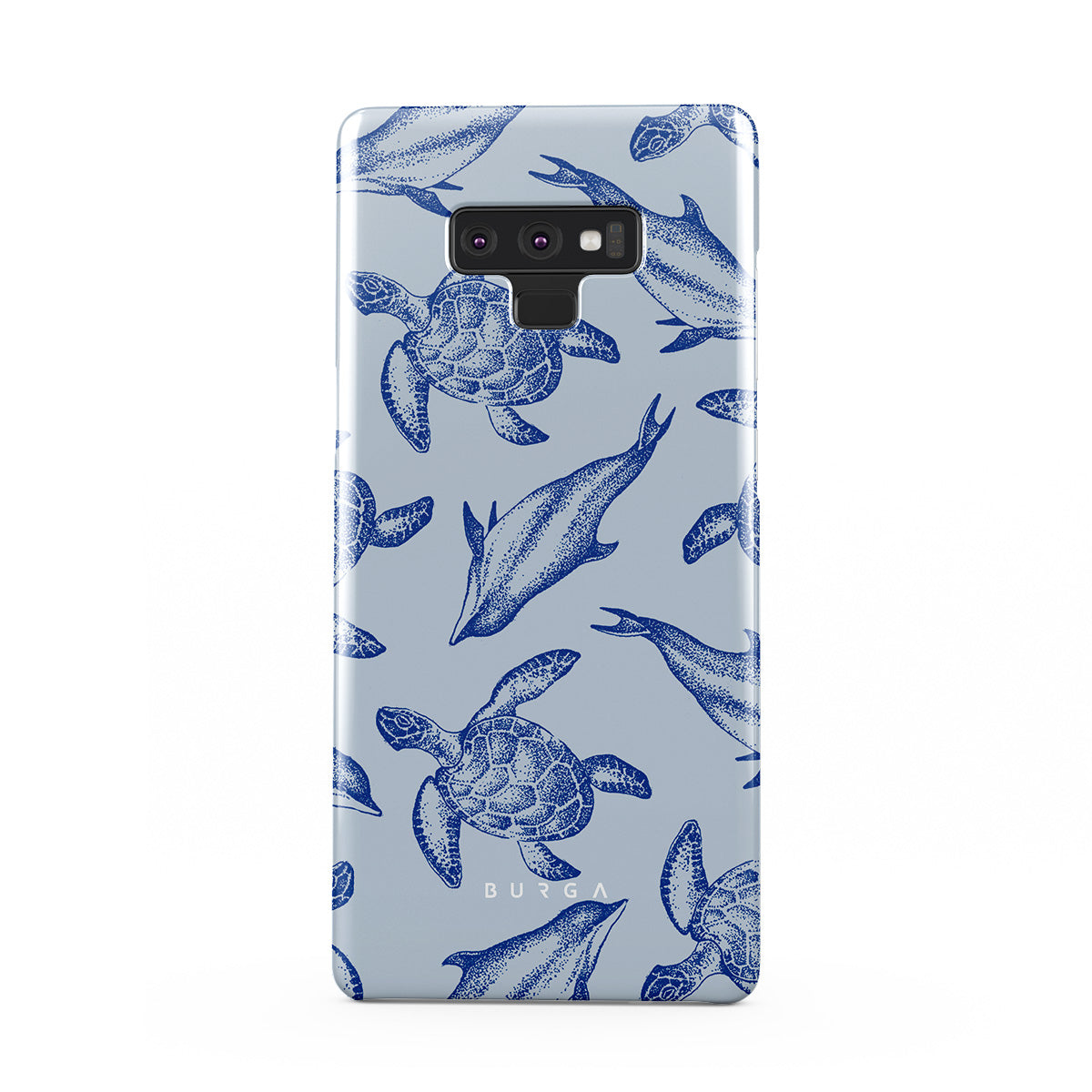 A beautiful design featuring lively turtles and dolphins playfully dancing in serene light blue water. Dive into the ocean's rhythm with our Aquatic Dance Samsung Galaxy Note 9 case.