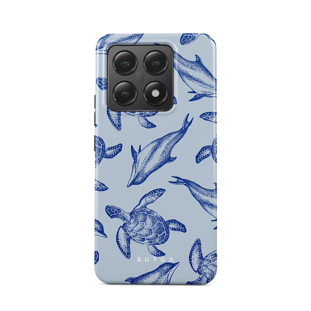 A beautiful design featuring lively turtles and dolphins playfully dancing in serene light blue water. Dive into the ocean's rhythm with our Aquatic Dance Xiaomi 14T case.
