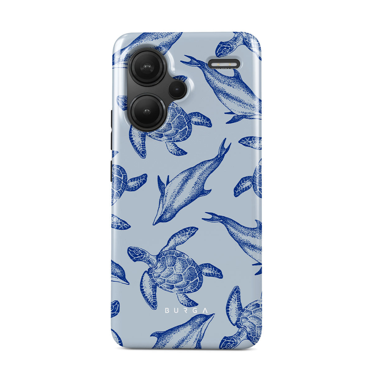 A beautiful design featuring lively turtles and dolphins playfully dancing in serene light blue water. Dive into the ocean's rhythm with our Aquatic Dance Xiaomi Redmi Note 13 Pro+ 5G case.