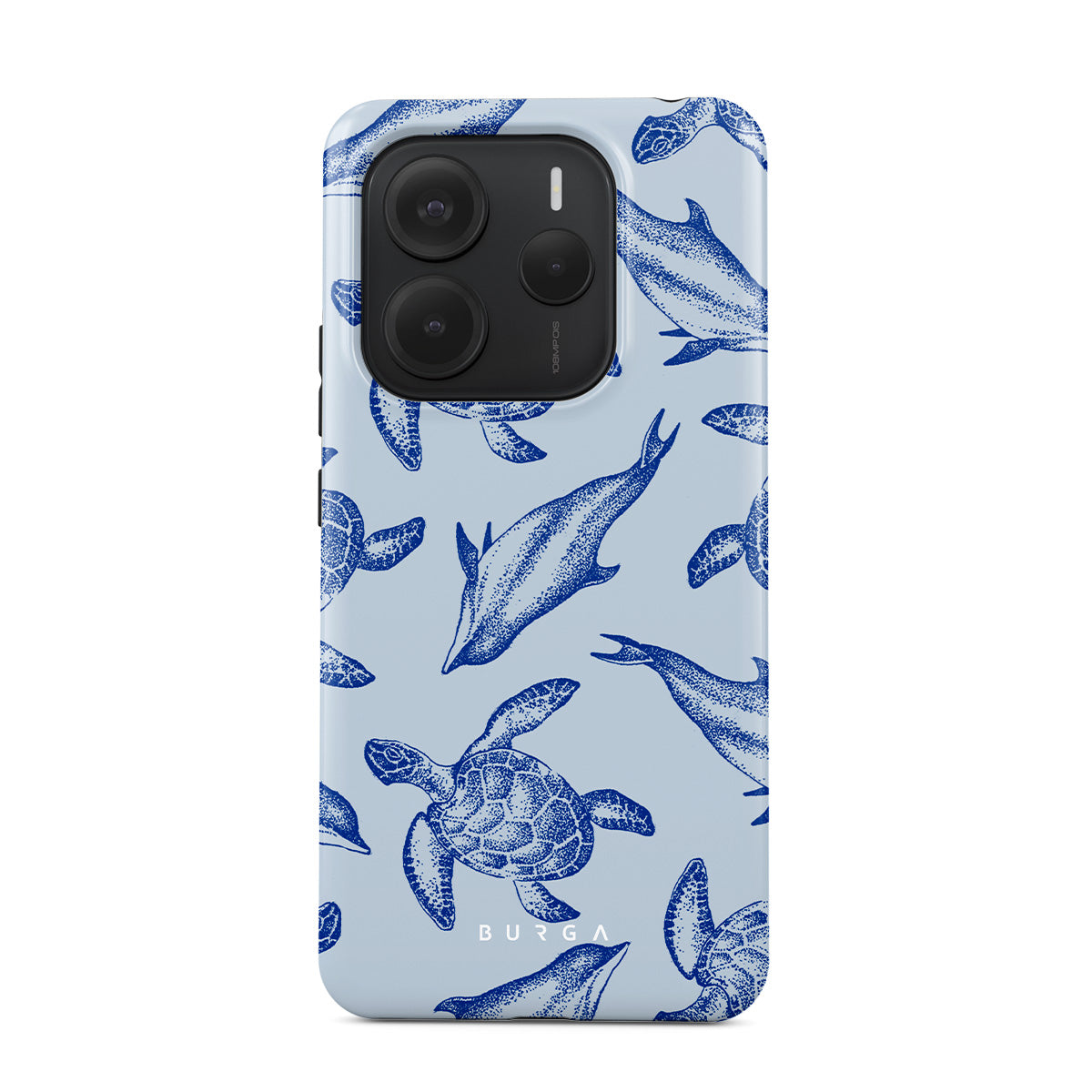 A beautiful design featuring lively turtles and dolphins playfully dancing in serene light blue water. Dive into the ocean's rhythm with our Aquatic Dance Xiaomi Redmi Note 14 5G case.