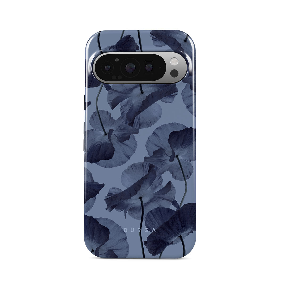 This Google Pixel 9 Pro phone case design blends seamlessly into any workspace, offering a polished yet mysterious touch. Mixing deep blue flowers and a bright blue background, our Archives pattern is perfect for those who like their style to whisper, not shout.
