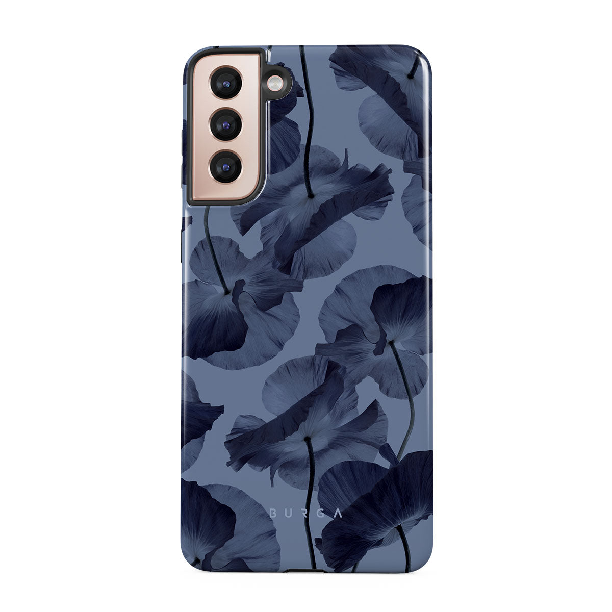 This Samsung Galaxy S21 Plus phone case design blends seamlessly into any workspace, offering a polished yet mysterious touch. Mixing deep blue flowers and a bright blue background, our Archives pattern is perfect for those who like their style to whisper, not shout.