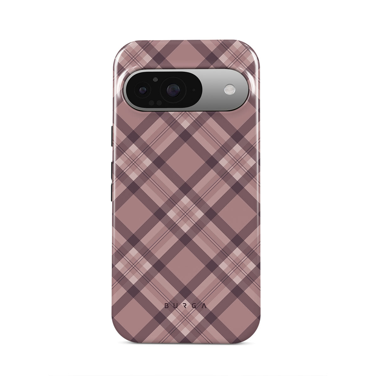 Made for those who hustle hard and look sharp. Our ASAP Google Pixel 9 phone case design features a sleek rosé-gray background with diagonal plaid in soft grey and deep pink—mixing modern flair with understated elegance. For the pros who know that style and speed go hand-in-hand.