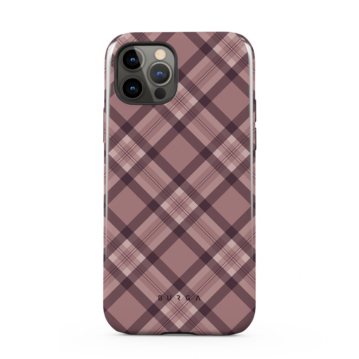 Made for those who hustle hard and look sharp. Our ASAP iPhone 12 Pro phone case design features a sleek rosé-gray background with diagonal plaid in soft grey and deep pink—mixing modern flair with understated elegance. For the pros who know that style and speed go hand-in-hand.