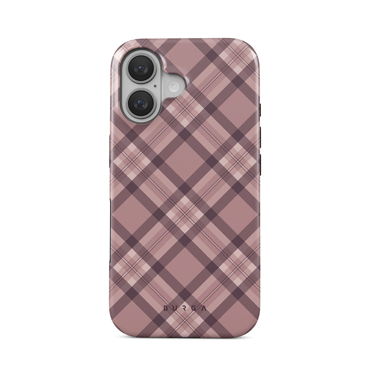 Made for those who hustle hard and look sharp. Our ASAP iPhone 16 phone case design features a sleek rosé-gray background with diagonal plaid in soft grey and deep pink—mixing modern flair with understated elegance. For the pros who know that style and speed go hand-in-hand.