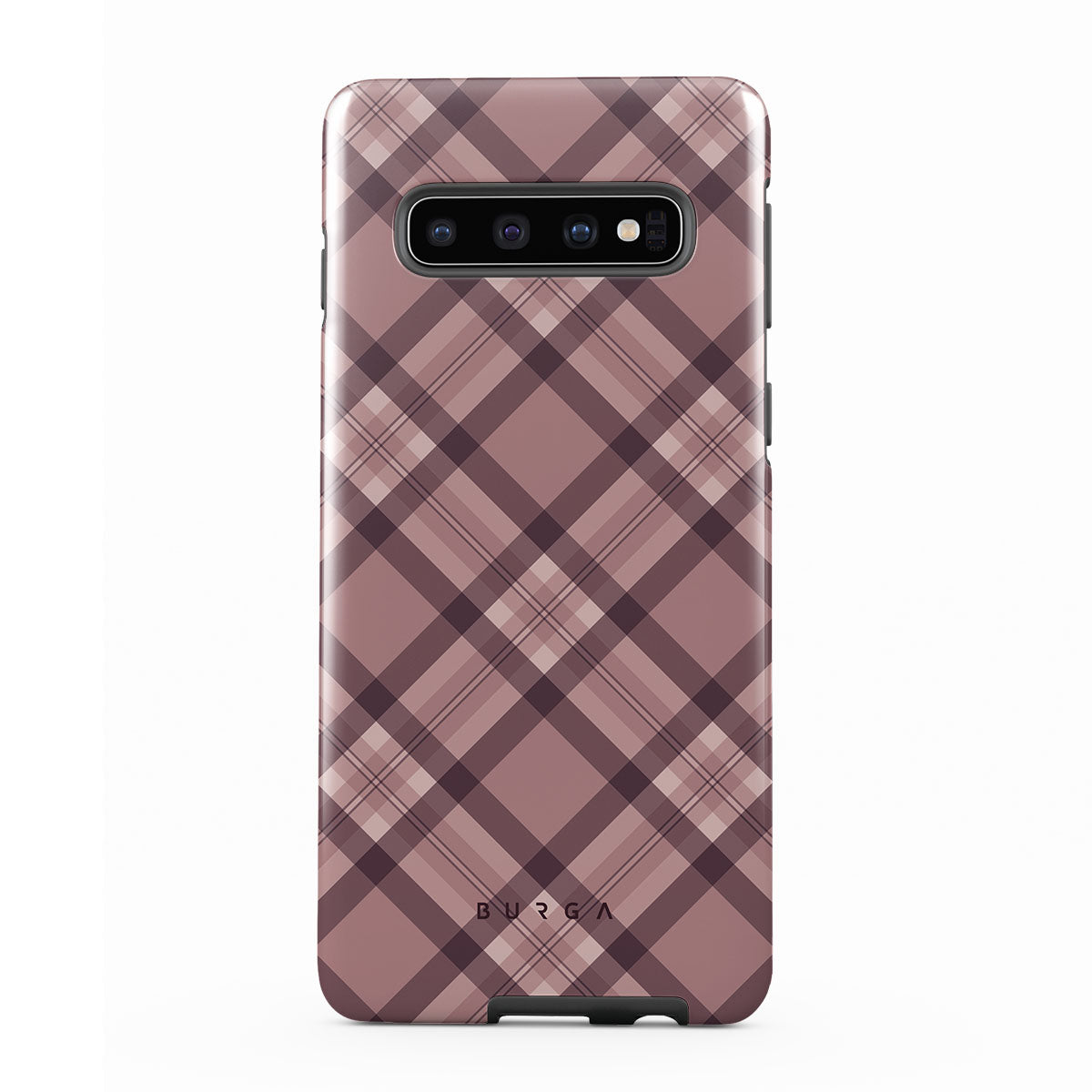 Made for those who hustle hard and look sharp. Our ASAP Samsung Galaxy S10 4G phone case design features a sleek rosé-gray background with diagonal plaid in soft grey and deep pink—mixing modern flair with understated elegance. For the pros who know that style and speed go hand-in-hand.