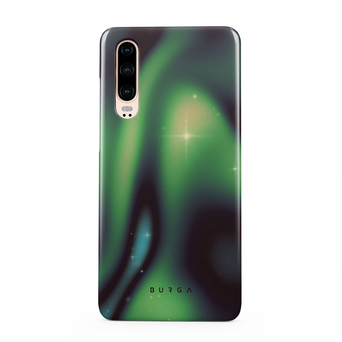 Nature's magic shines through in a mysterious display of lights. Delicate colors intertwine in a ballet of beauty and grace. Poetic harmony is captured with each swirl. It feels as if you're holding a piece of the night sky. Experience the serene grandeur of the Aurora Huawei P30 phone case design.