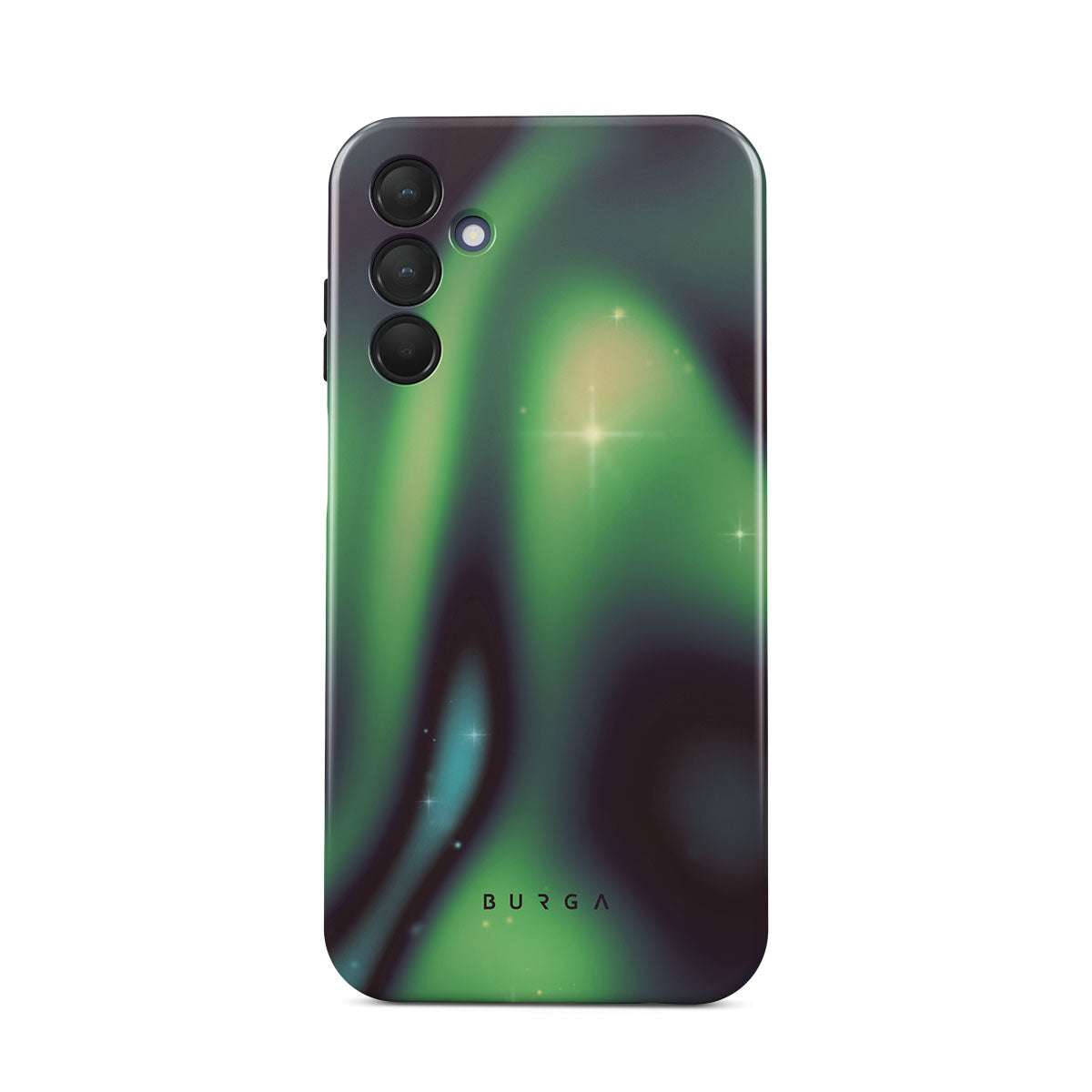 Nature's magic shines through in a mysterious display of lights. Delicate colors intertwine in a ballet of beauty and grace. Poetic harmony is captured with each swirl. It feels as if you're holding a piece of the night sky. Experience the serene grandeur of the Aurora Samsung Galaxy A15 4G / 5G phone case design.