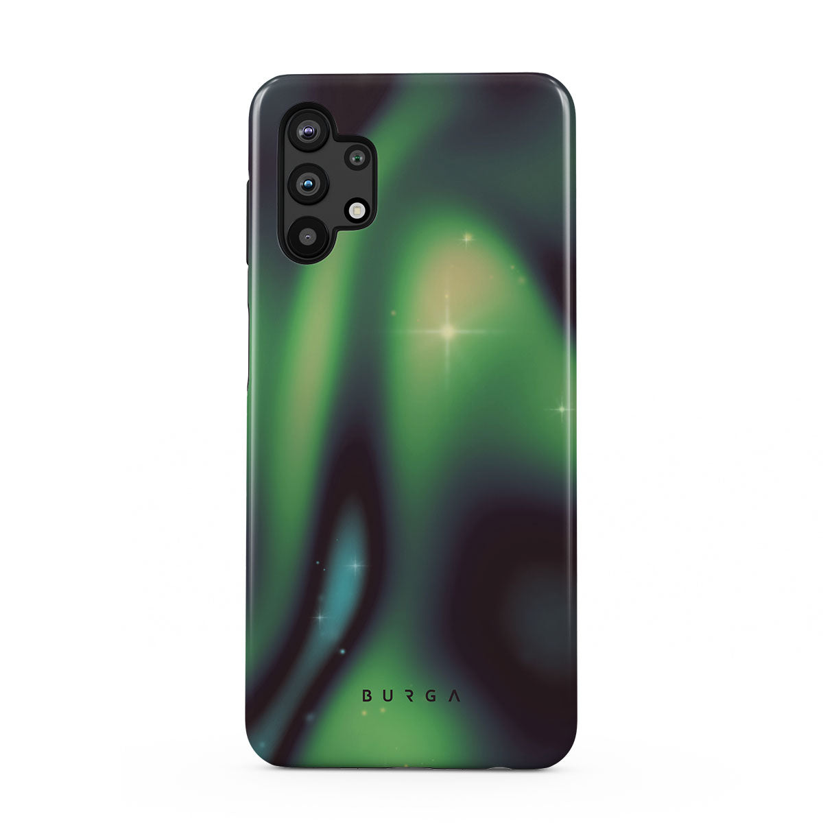 Nature's magic shines through in a mysterious display of lights. Delicate colors intertwine in a ballet of beauty and grace. Poetic harmony is captured with each swirl. It feels as if you're holding a piece of the night sky. Experience the serene grandeur of the Aurora Samsung Galaxy A32 5G phone case design.