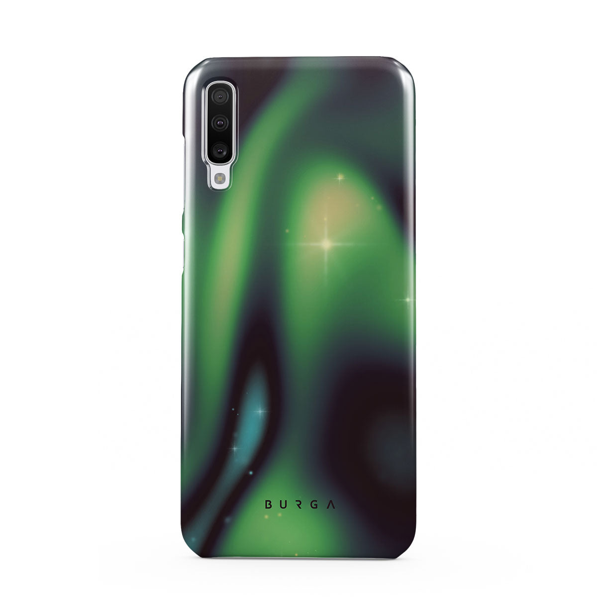 Nature's magic shines through in a mysterious display of lights. Delicate colors intertwine in a ballet of beauty and grace. Poetic harmony is captured with each swirl. It feels as if you're holding a piece of the night sky. Experience the serene grandeur of the Aurora Samsung Galaxy A70 phone case design.
