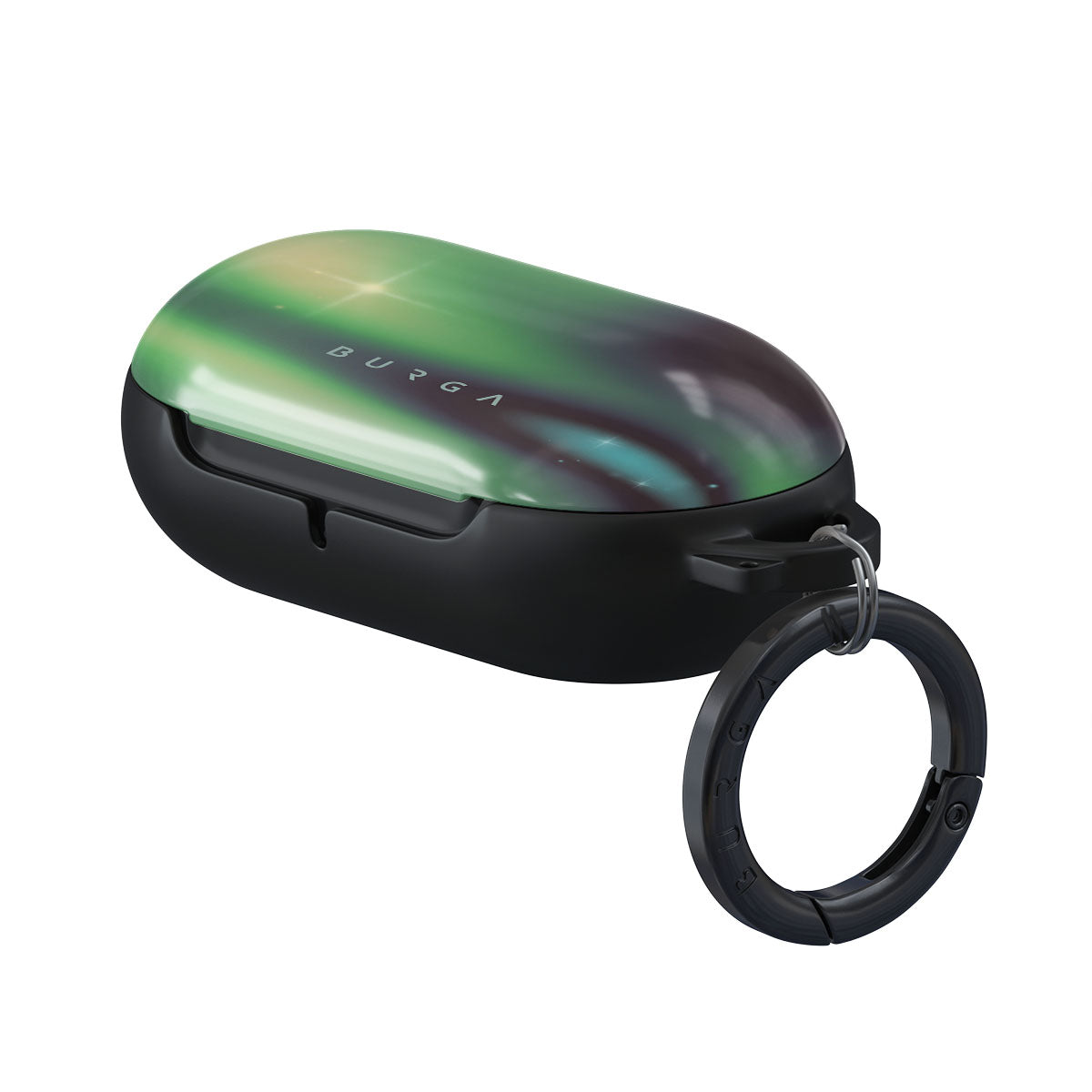 Nature's magic shines through in a mysterious display of lights. Delicate colors intertwine in a ballet of beauty and grace. Poetic harmony is captured with each swirl. It feels as if you're holding a piece of the night sky. Experience the serene grandeur of the Aurora Samsung Galaxy Buds case cover design.