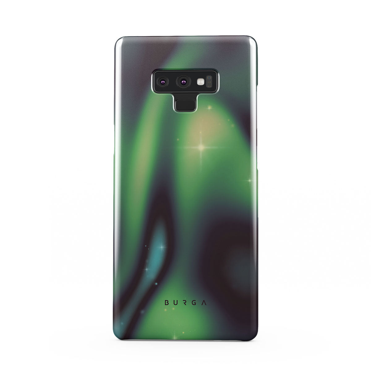 Nature's magic shines through in a mysterious display of lights. Delicate colors intertwine in a ballet of beauty and grace. Poetic harmony is captured with each swirl. It feels as if you're holding a piece of the night sky. Experience the serene grandeur of the Aurora Samsung Galaxy Note 9 phone case design.