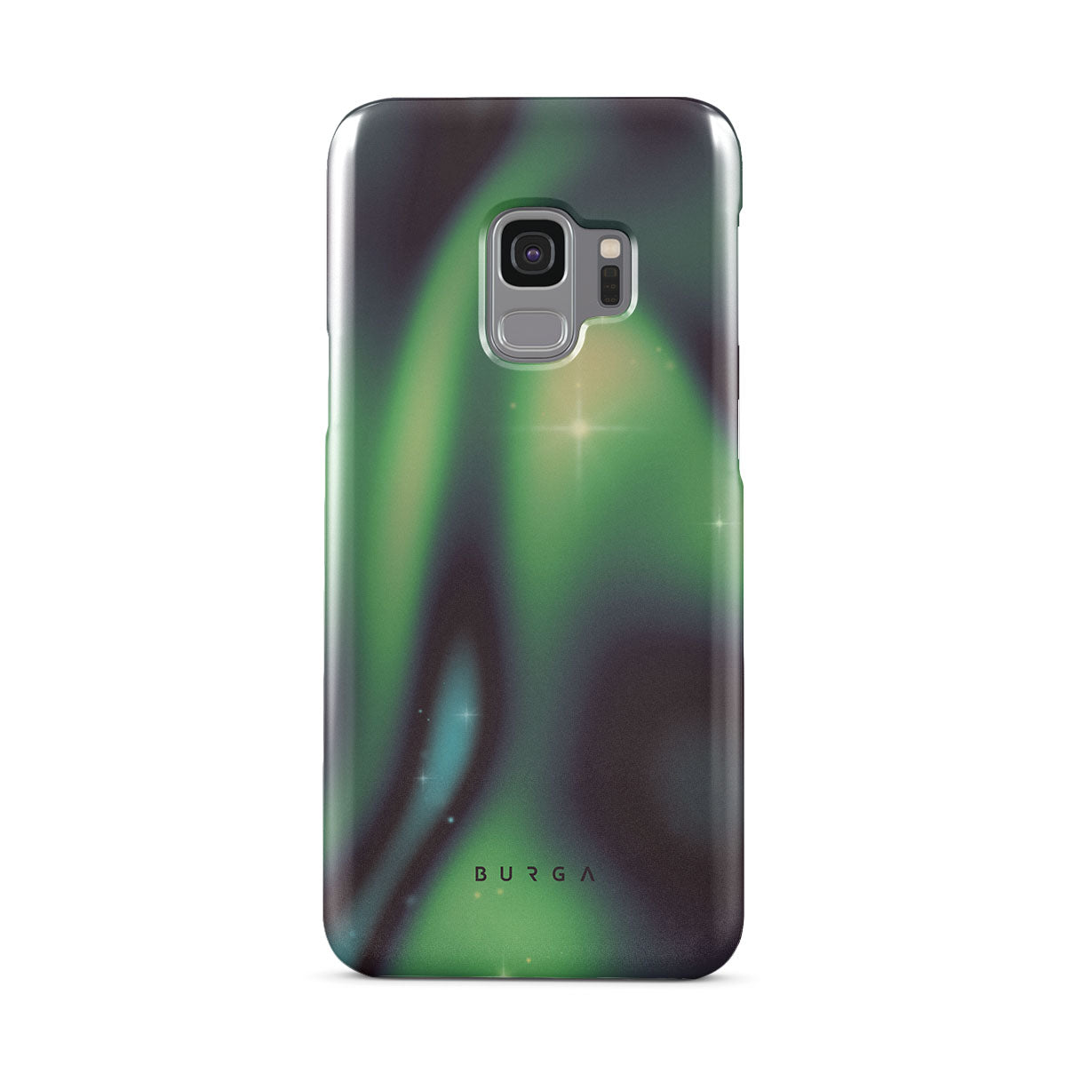 Nature's magic shines through in a mysterious display of lights. Delicate colors intertwine in a ballet of beauty and grace. Poetic harmony is captured with each swirl. It feels as if you're holding a piece of the night sky. Experience the serene grandeur of the Aurora Samsung Galaxy S9 phone case design.