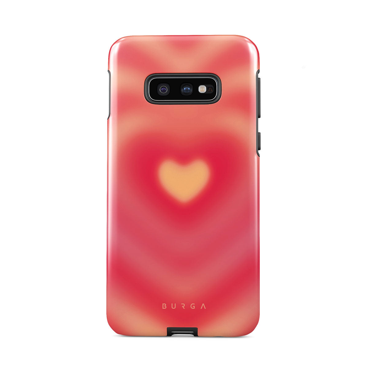 Feel the warmth of Awakening. With its glowing pink-orange shades and a heart at the center, this design is an emblem of one's inner essence. The Awakening Samsung Galaxy S10E phone case design reminds us of the soul's luminous rebirth, capturing the spirit of the Aura Collection and igniting the magic within.