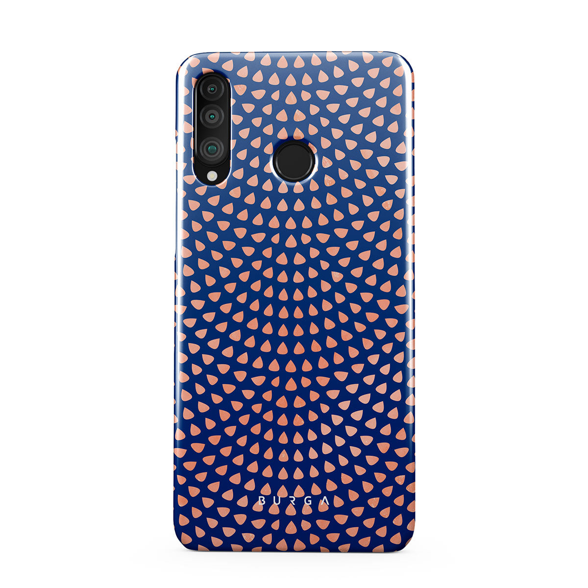 Rose gold teardrops meet a deep shade of blue in our Azure Waters Huawei P30 Lite phone case and create the duo worth taking with you every evening out. Add a touch of strictness with the symmetrical teardrops pattern paving the way and keeping your phone out of harm's way with the case that is as protective as it is beautiful.