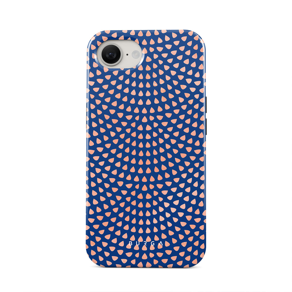 Rose gold teardrops meet a deep shade of blue in our Azure Waters iPhone 16e phone case and create the duo worth taking with you every evening out. Add a touch of strictness with the symmetrical teardrops pattern paving the way and keeping your phone out of harm's way with the case that is as protective as it is beautiful.