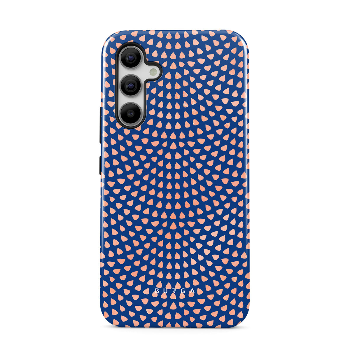 Rose gold teardrops meet a deep shade of blue in our Azure Waters Samsung Galaxy A55 phone case and create the duo worth taking with you every evening out. Add a touch of strictness with the symmetrical teardrops pattern paving the way and keeping your phone out of harm's way with the case that is as protective as it is beautiful.