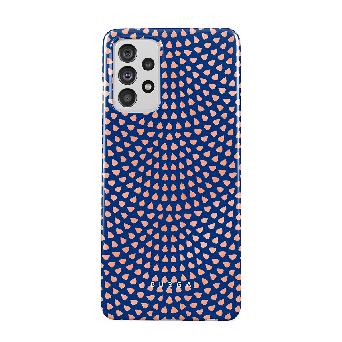 Rose gold teardrops meet a deep shade of blue in our Azure Waters Samsung Galaxy A72 4G / 5G phone case and create the duo worth taking with you every evening out. Add a touch of strictness with the symmetrical teardrops pattern paving the way and keeping your phone out of harm's way with the case that is as protective as it is beautiful.