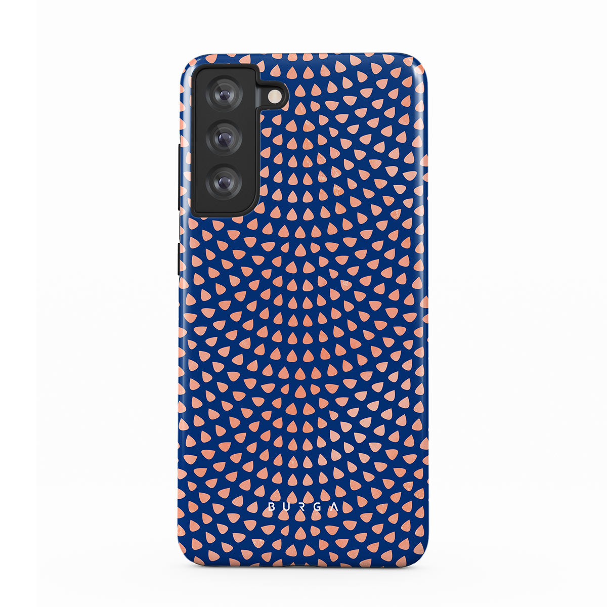 Rose gold teardrops meet a deep shade of blue in our Azure Waters Samsung Galaxy S21 FE phone case and create the duo worth taking with you every evening out. Add a touch of strictness with the symmetrical teardrops pattern paving the way and keeping your phone out of harm's way with the case that is as protective as it is beautiful.