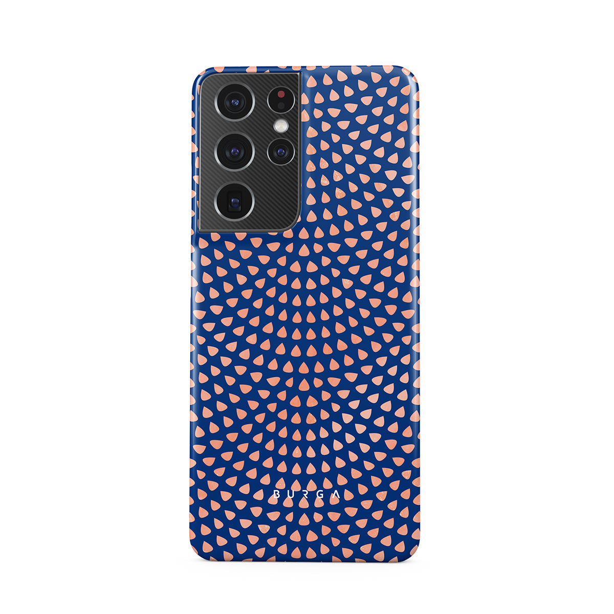Rose gold teardrops meet a deep shade of blue in our Azure Waters Samsung Galaxy S21 Ultra phone case and create the duo worth taking with you every evening out. Add a touch of strictness with the symmetrical teardrops pattern paving the way and keeping your phone out of harm's way with the case that is as protective as it is beautiful.