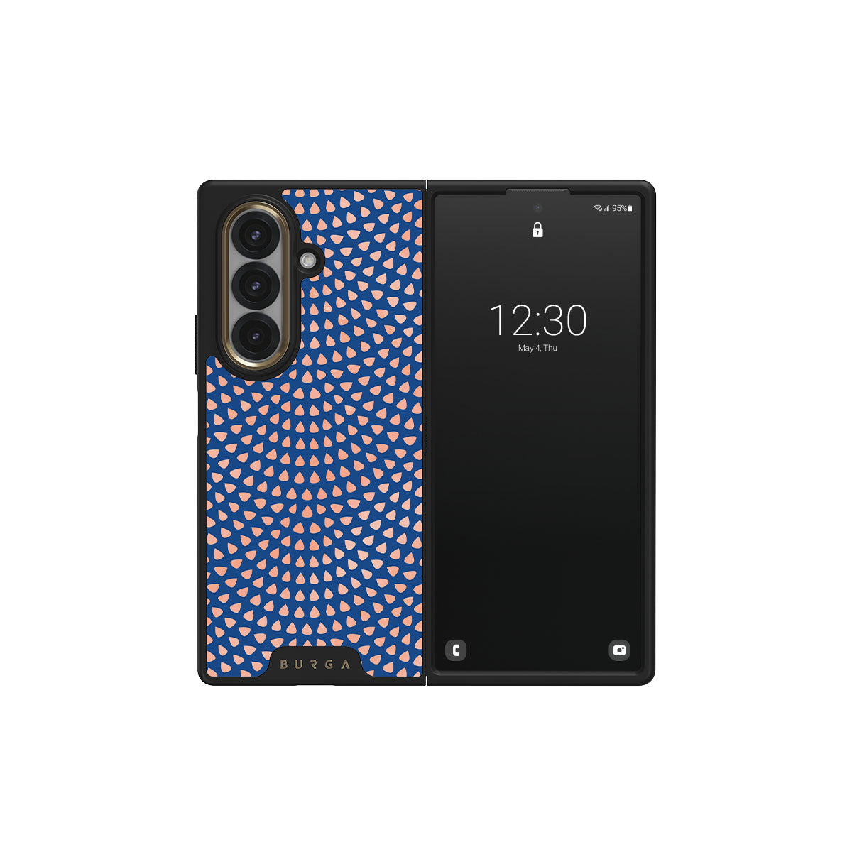 Rose gold teardrops meet a deep shade of blue in our Azure Waters Samsung Galaxy Z Fold 7 phone case and create the duo worth taking with you every evening out. Add a touch of strictness with the symmetrical teardrops pattern paving the way and keeping your phone out of harm's way with the case that is as protective as it is beautiful.