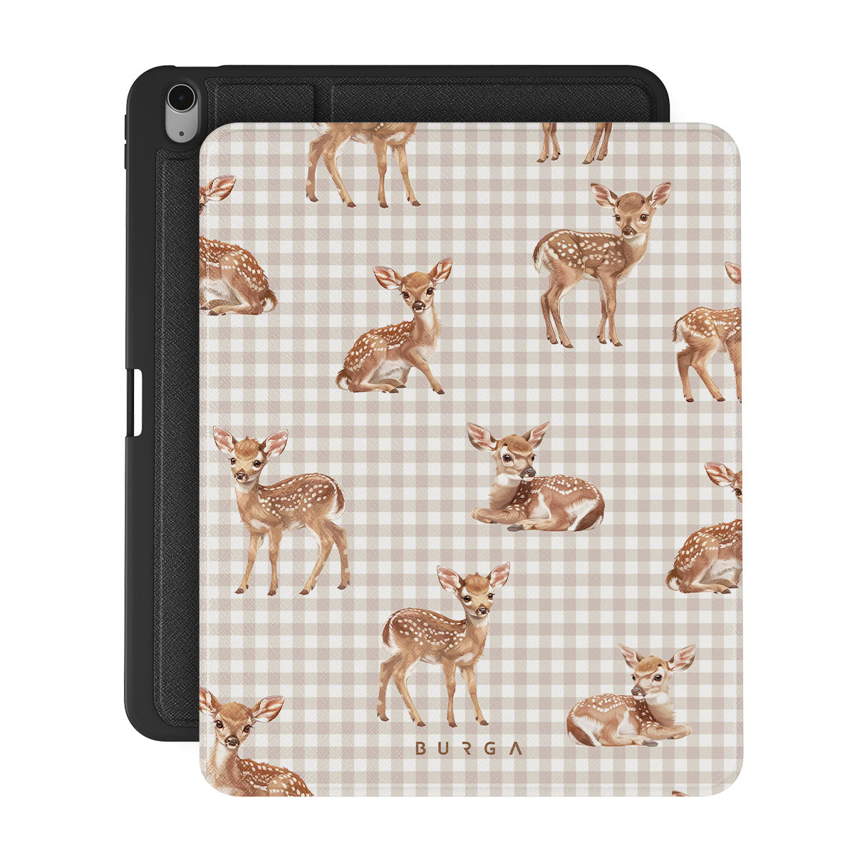 Gentle deers, frozen in time on a field of nostalgia, invite you to rediscover the playful innocence of quiet afternoons in the shade of old trees. Meet our Bambi iPad Air 13 (7th/6th Gen) folio case design.