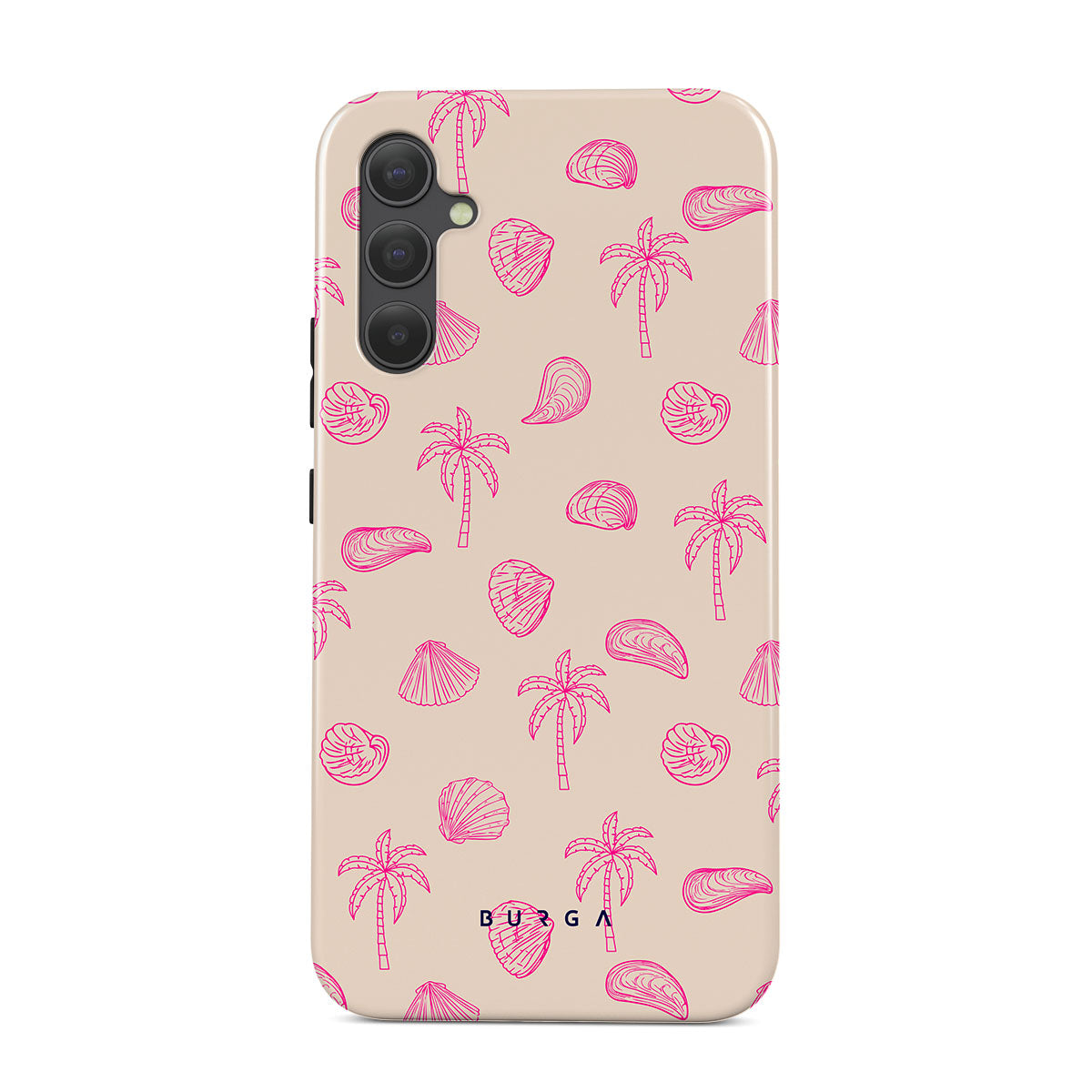 Lovely, beachy, and pink is what we can say about our Beach Please Samsung Galaxy A34 phone case design. The playful pattern of palms and seashells will look cute in your summer selfies. Add that playful touch to your everyday life and keep your phone safe from scratches the sand can make!
