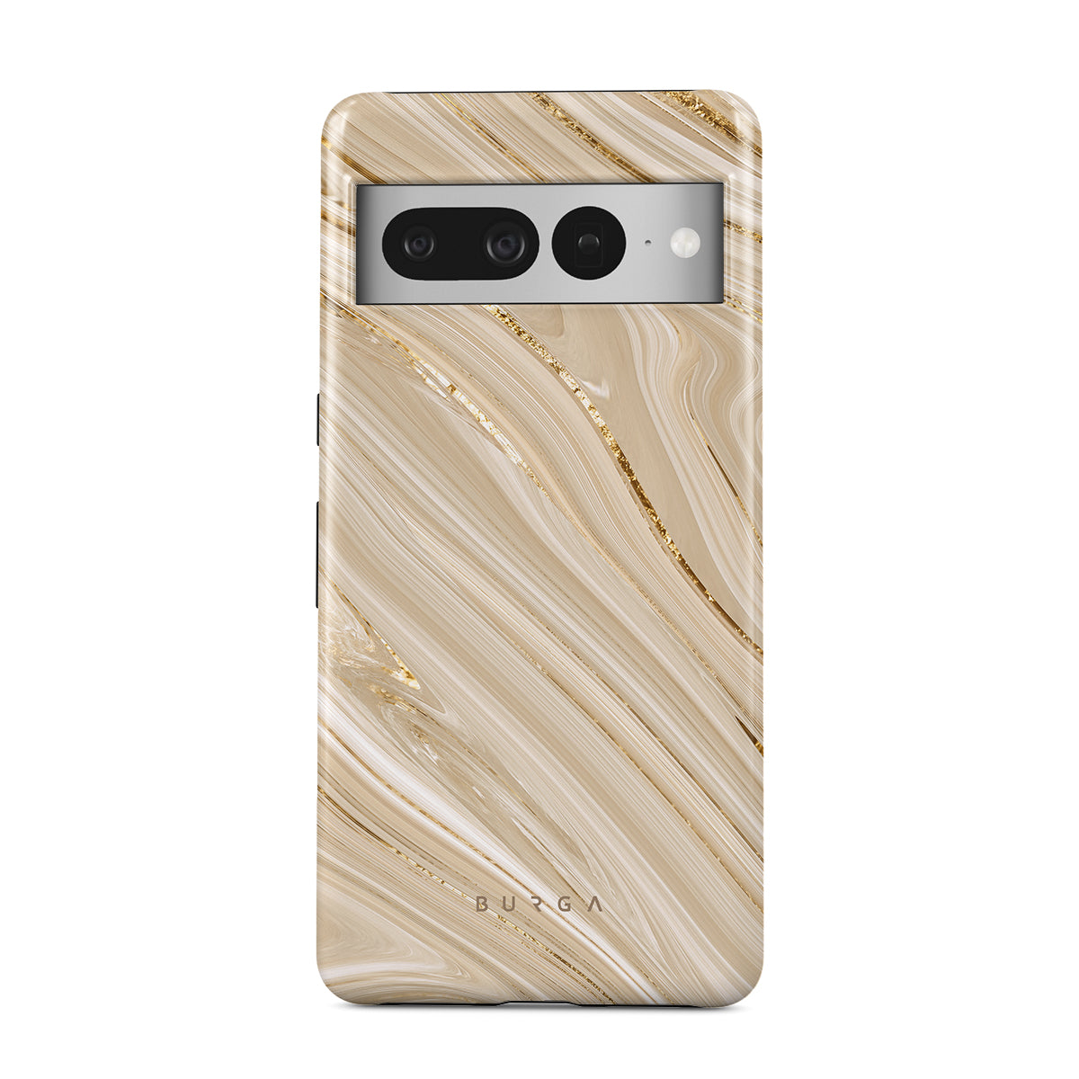 The Full Glam Google Pixel 7 Pro phone case exudes elegance and softness in the beige color scheme with golden accents. The delicate design of the phone case will enhance your style and keep your phone safe and sound while doing that.