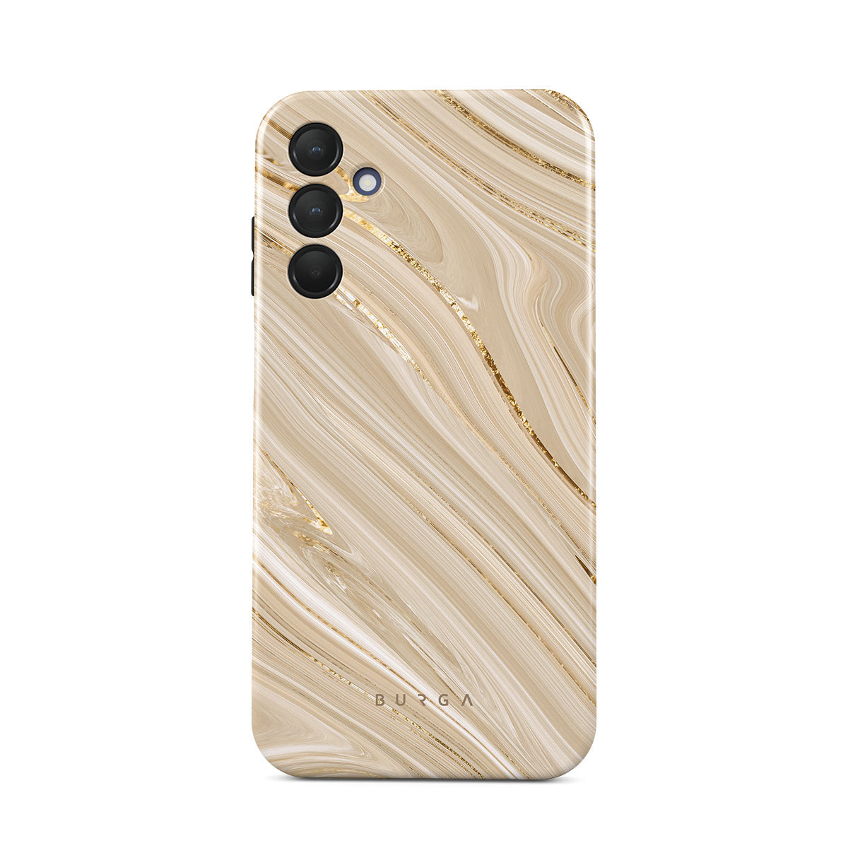The Full Glam Samsung Galaxy A51 phone case exudes elegance and softness in the beige color scheme with golden accents. The delicate design of the phone case will enhance your style and keep your phone safe and sound while doing that.