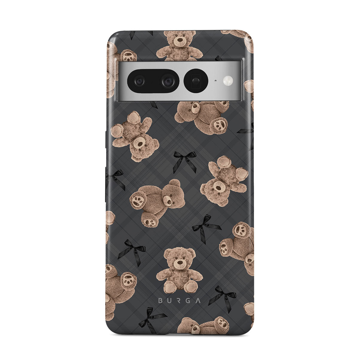 A design blending innocence and sophistication. With teddy bears and a chic gray background, BFF is a throwback to the comforting nostalgia of youth, updated with a touch of modern glam. This design will make you and your Google Pixel 7 Pro phone case inseparable companions, just like the best of friends.
