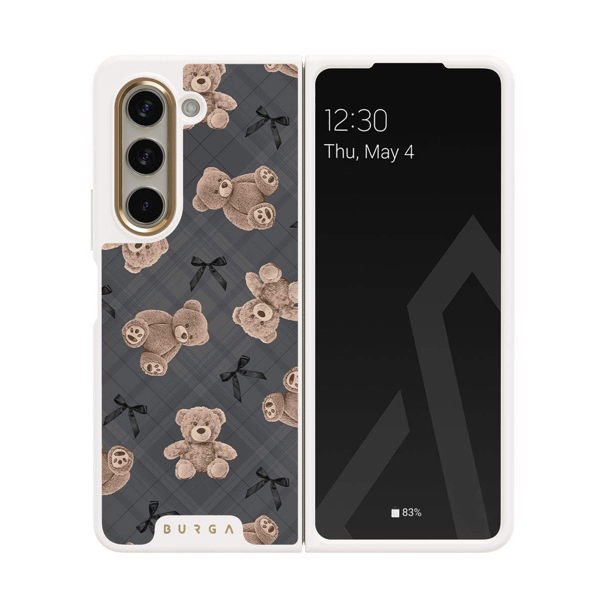 A design blending innocence and sophistication. With teddy bears and a chic gray background, BFF is a throwback to the comforting nostalgia of youth, updated with a touch of modern glam. This design will make you and your Samsung Galaxy Z Fold 5 phone case inseparable companions, just like the best of friends.