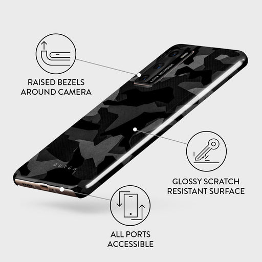 Sometimes, all you need is a possibility to blend into nature. With our Night Black Camo Huawei P40 phone case, use black camouflage as a way to express your curious side or blend in with the surroundings. A stylish accessory can offer heavy-duty protection too!