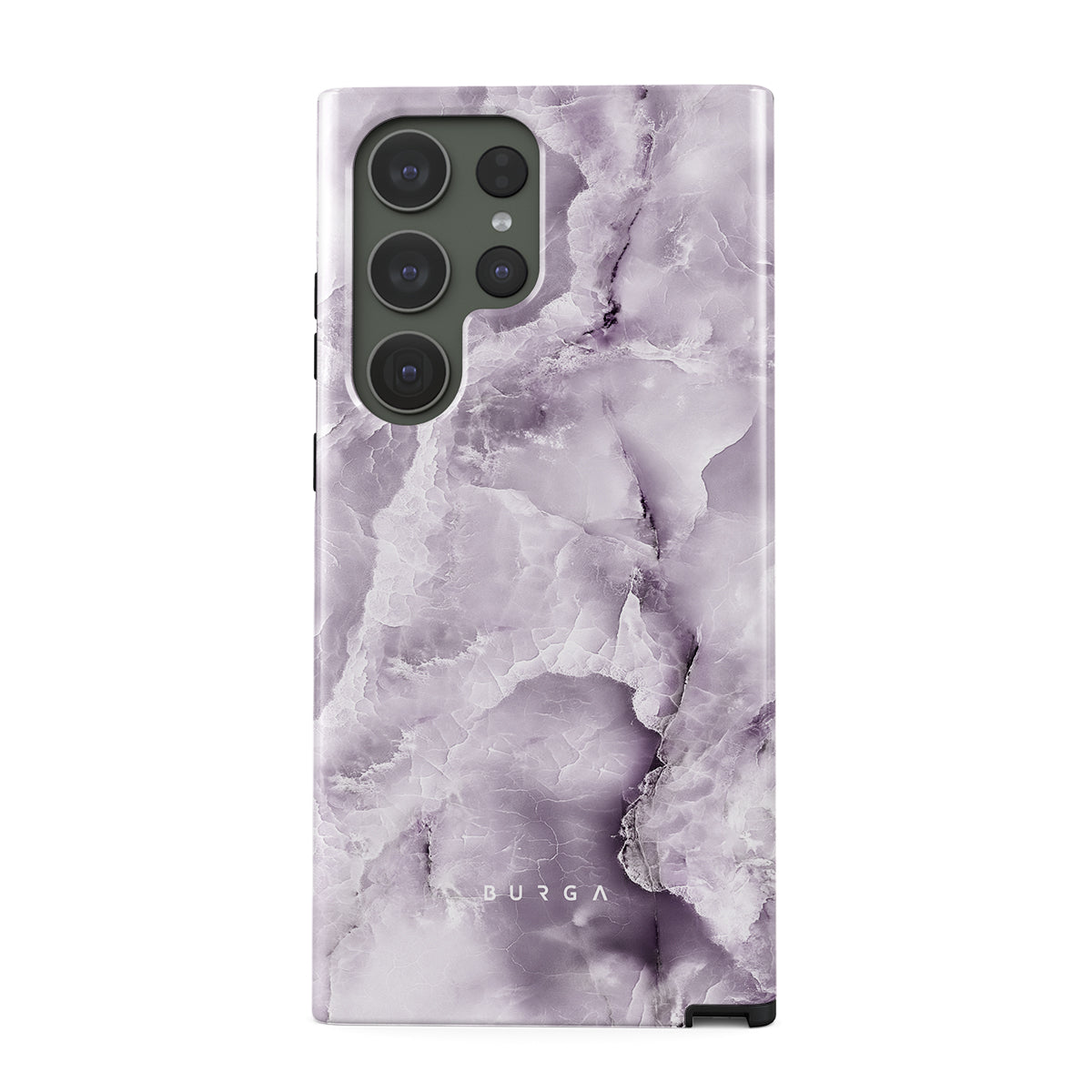 The gray violet-colored Black Currant Samsung Galaxy S23 Ultra phone case showcases a soft marble design that will add a touch of luxury to your style. The color itself represents the future and dreams, yet the nature of it offers a calming effect. Keep a piece of serenity in your hands.