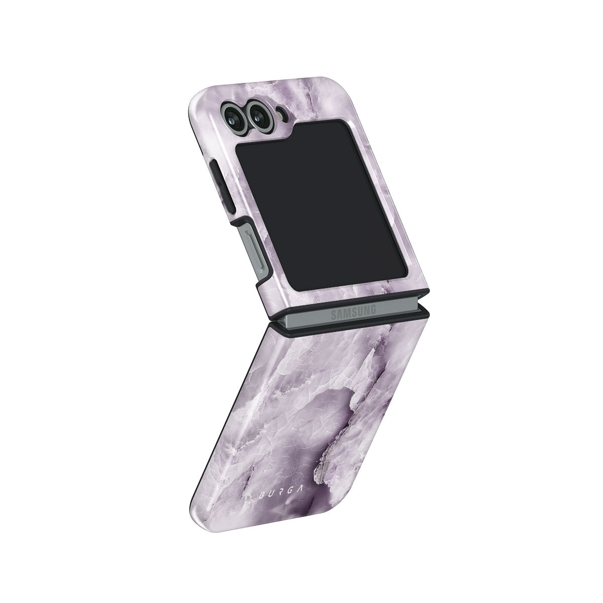 The gray violet-colored Black Currant Samsung Galaxy Z Flip 6 phone case showcases a soft marble design that will add a touch of luxury to your style. The color itself represents the future and dreams, yet the nature of it offers a calming effect. Keep a piece of serenity in your hands.