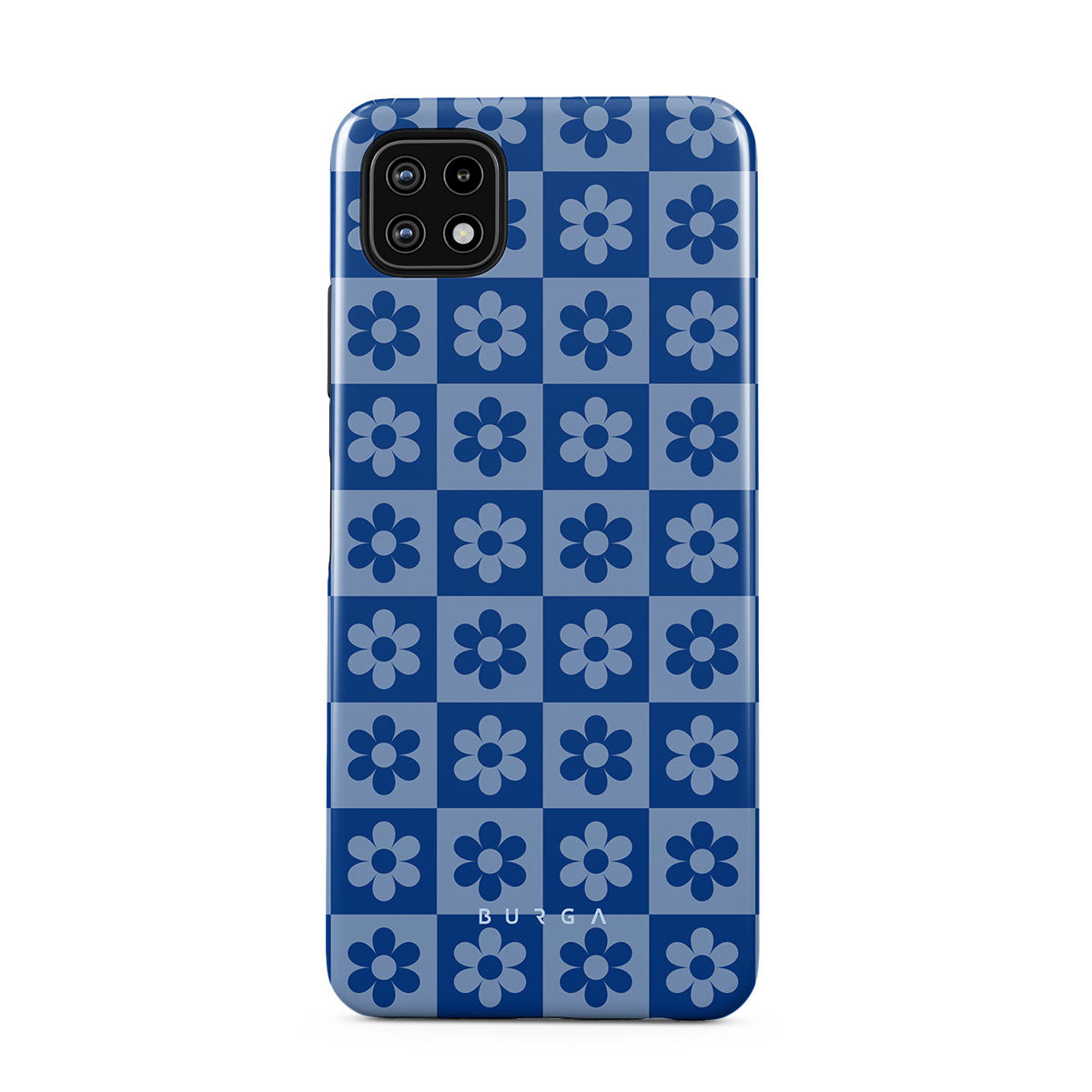 A true statement design, featuring a captivating checkered pattern with icy blue tones and a beautiful flower adorning each square. Our Samsung Galaxy A22 5G phone case not only offers reliable protection for your device but also captures the essence of the fun and carefree Y2K era. Embrace your inner flower child with the Bloom Boom phone case and let your tech bloom with style.