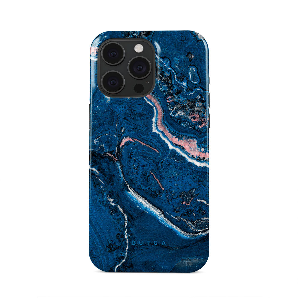 Electric indigo blue meets white, and pastel pink swirls in a unique marble pattern in our Blue Lagoon iPhone 15 Pro phone case. The modern take on a blue marble trend will look aesthetically pleasing on your device while offering durable protection from any falls.