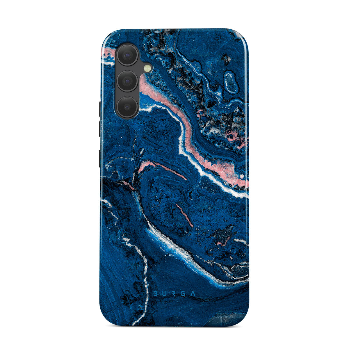 Electric indigo blue meets white, and pastel pink swirls in a unique marble pattern in our Blue Lagoon Samsung Galaxy A34 phone case. The modern take on a blue marble trend will look aesthetically pleasing on your device while offering durable protection from any falls.