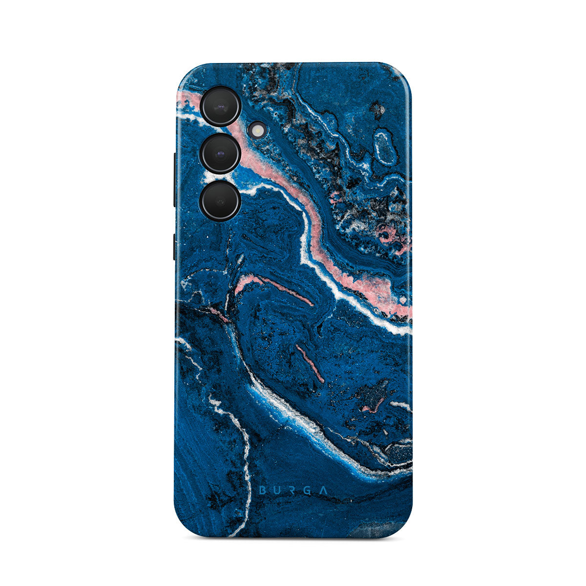 Electric indigo blue meets white, and pastel pink swirls in a unique marble pattern in our Blue Lagoon Samsung Galaxy A51 phone case. The modern take on a blue marble trend will look aesthetically pleasing on your device while offering durable protection from any falls.