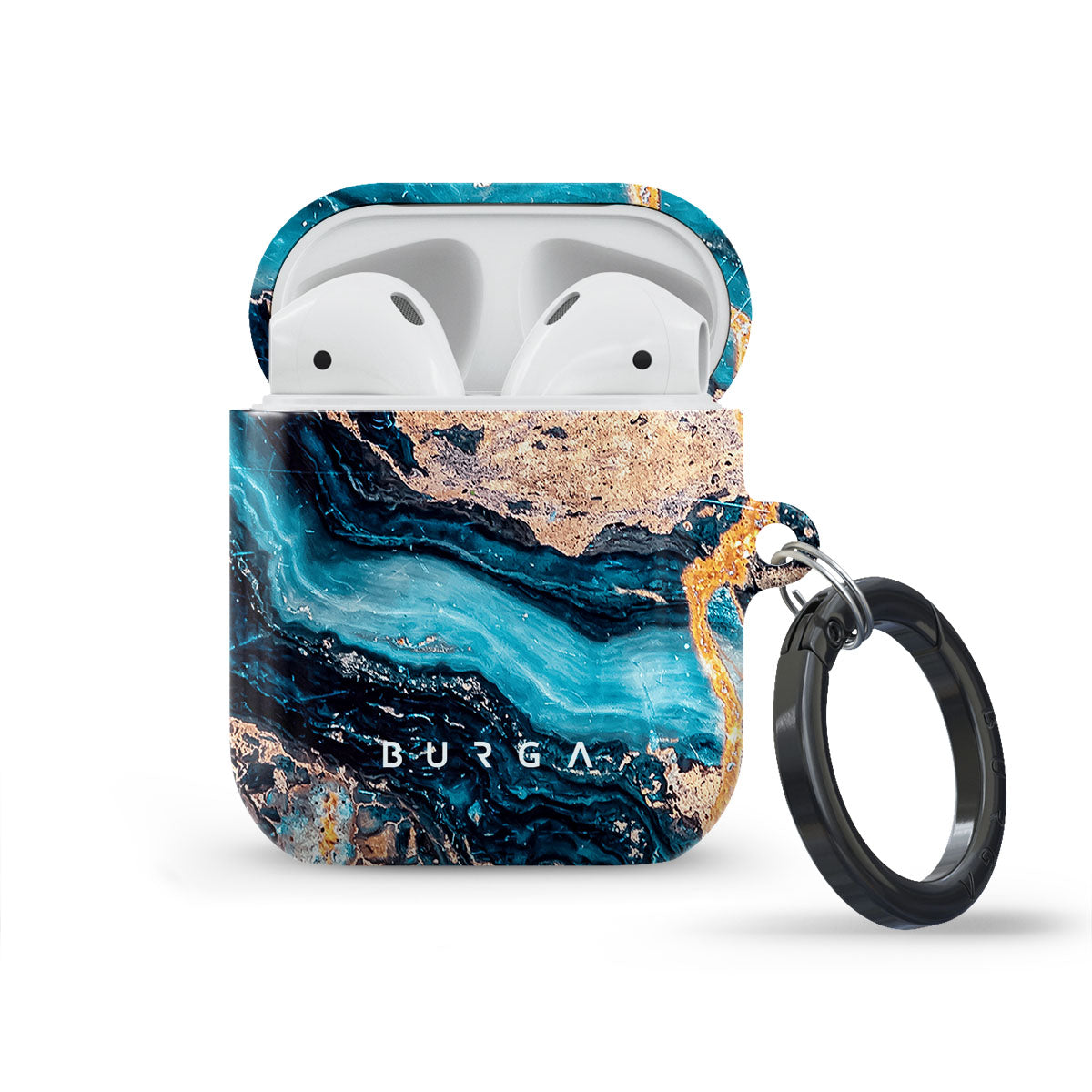 With our most loved Mystic River blue marble Apple Airpod Generation 1 & 2 case cover, take a dive into the wondrous world of blue marble swirls. Take care of your AirPods case and protect it while also making it a part of your accessory collection. Our case fits perfectly snug around Apple Airpod Generation 1 & 2 . “Like a glove!” one might say. And it won’t disrupt the wireless charging capabilities of the newer model. There’s even an LED light indicator to prove it (don’t worry, wired charging still works, too). When fitted, the BURGA case will protect the delicate Apple Airpod Generation 1 & 2 case beneath it from scratches, bumps, and drops while remaining scratch-free itself. Our signature design pattern prints are High Quality, and will never peel or fade away- thanks to our unique printing technology. And finally, a handy carabiner is there to make your life easier and more convenient: just snap it around your keys or belt loop and tackle the day head-on. Your music is right there by your side when you need it.