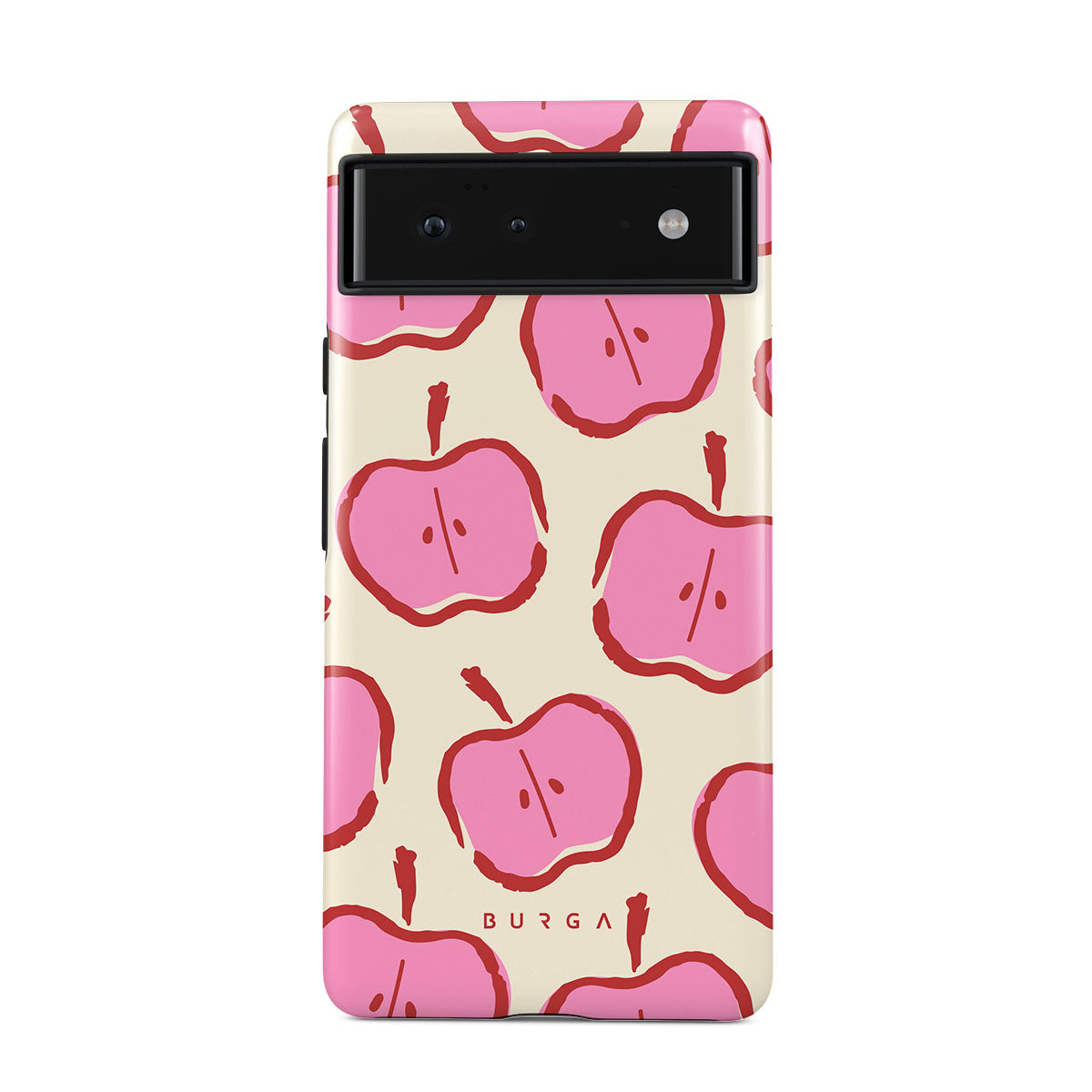 Our Bon Appétit Google Pixel 6a phone case design makes every day feel like a magical adventure filled with sweet surprises. The playful pink hues of the apples stand out brilliantly against the serene cream background, creating a captivating and enchanting visual.