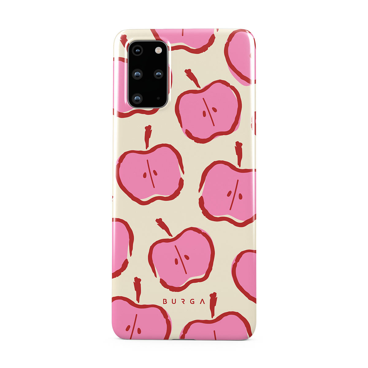Our Bon Appétit Samsung Galaxy S20 Plus 4G / 5G phone case design makes every day feel like a magical adventure filled with sweet surprises. The playful pink hues of the apples stand out brilliantly against the serene cream background, creating a captivating and enchanting visual.