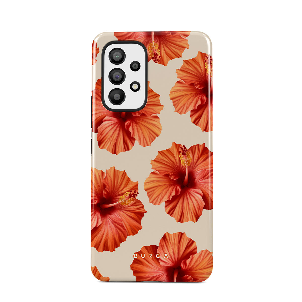 Transport yourself to a lush tropical escape with Bonita. Featuring bold, beautiful hibiscus blooms that pop against a creamy backdrop, this Samsung Galaxy A33 phone case design is perfect for those who dream of vibrant, floral beauty and exotic adventures.