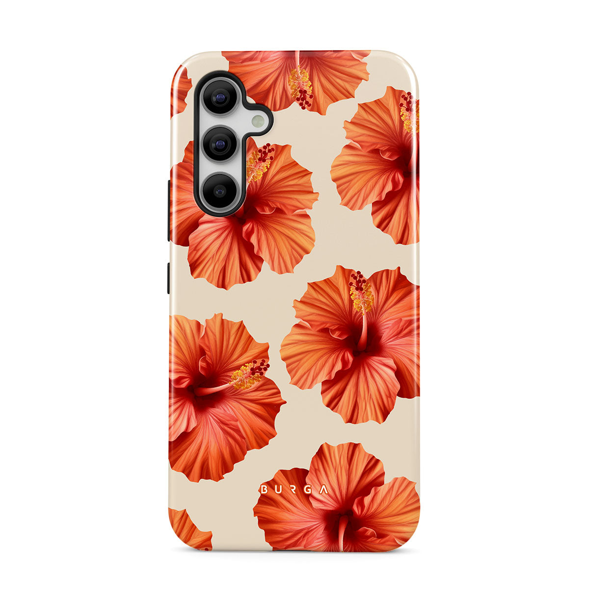Transport yourself to a lush tropical escape with Bonita. Featuring bold, beautiful hibiscus blooms that pop against a creamy backdrop, this Samsung Galaxy A54 phone case design is perfect for those who dream of vibrant, floral beauty and exotic adventures.